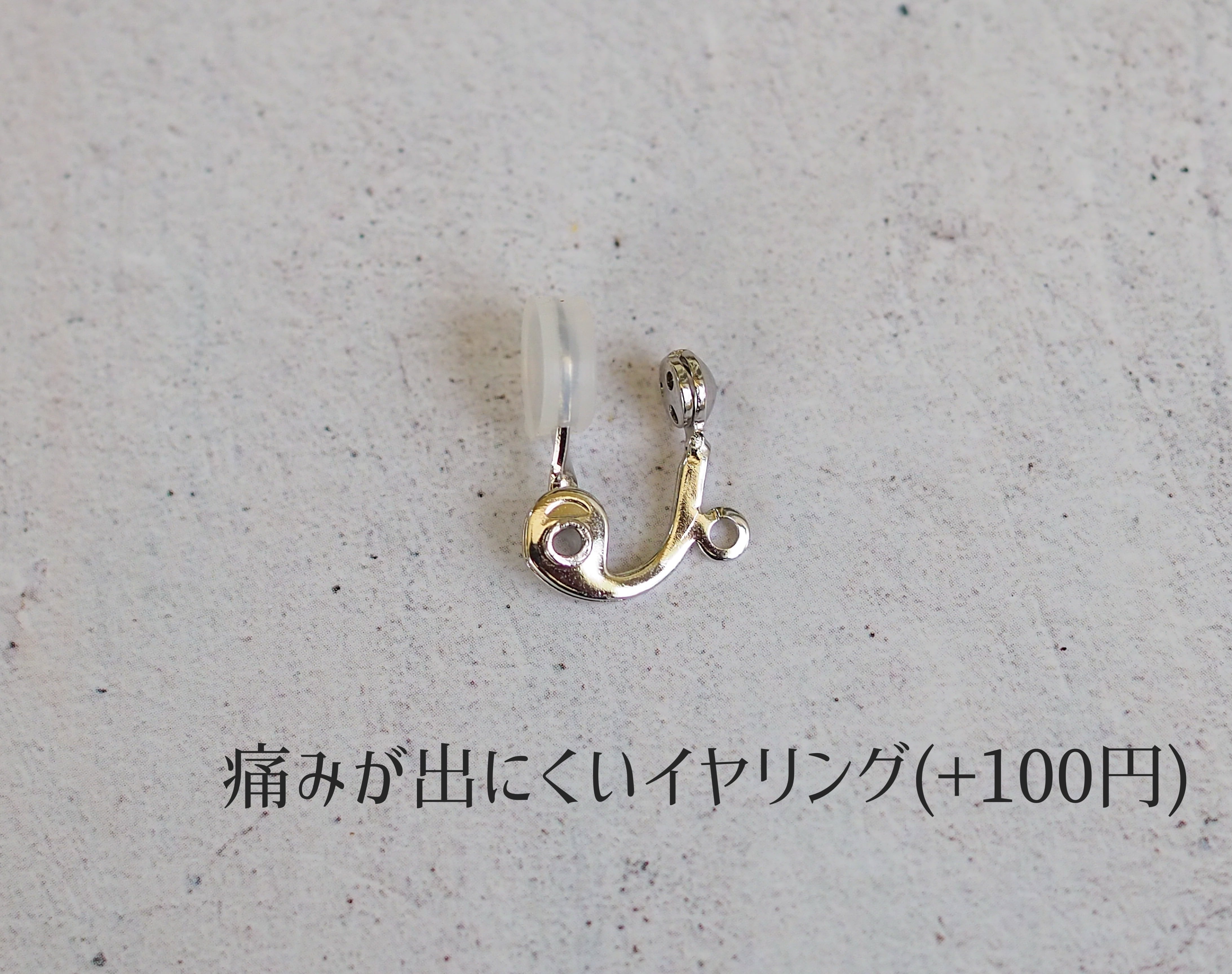 ガラスビーズ、メタルビーズ(真鍮)、テグス(ナイロン)、金具(真鍮、サージカルステンレス)、ピアス/イヤリング(サージカルステンレス)
