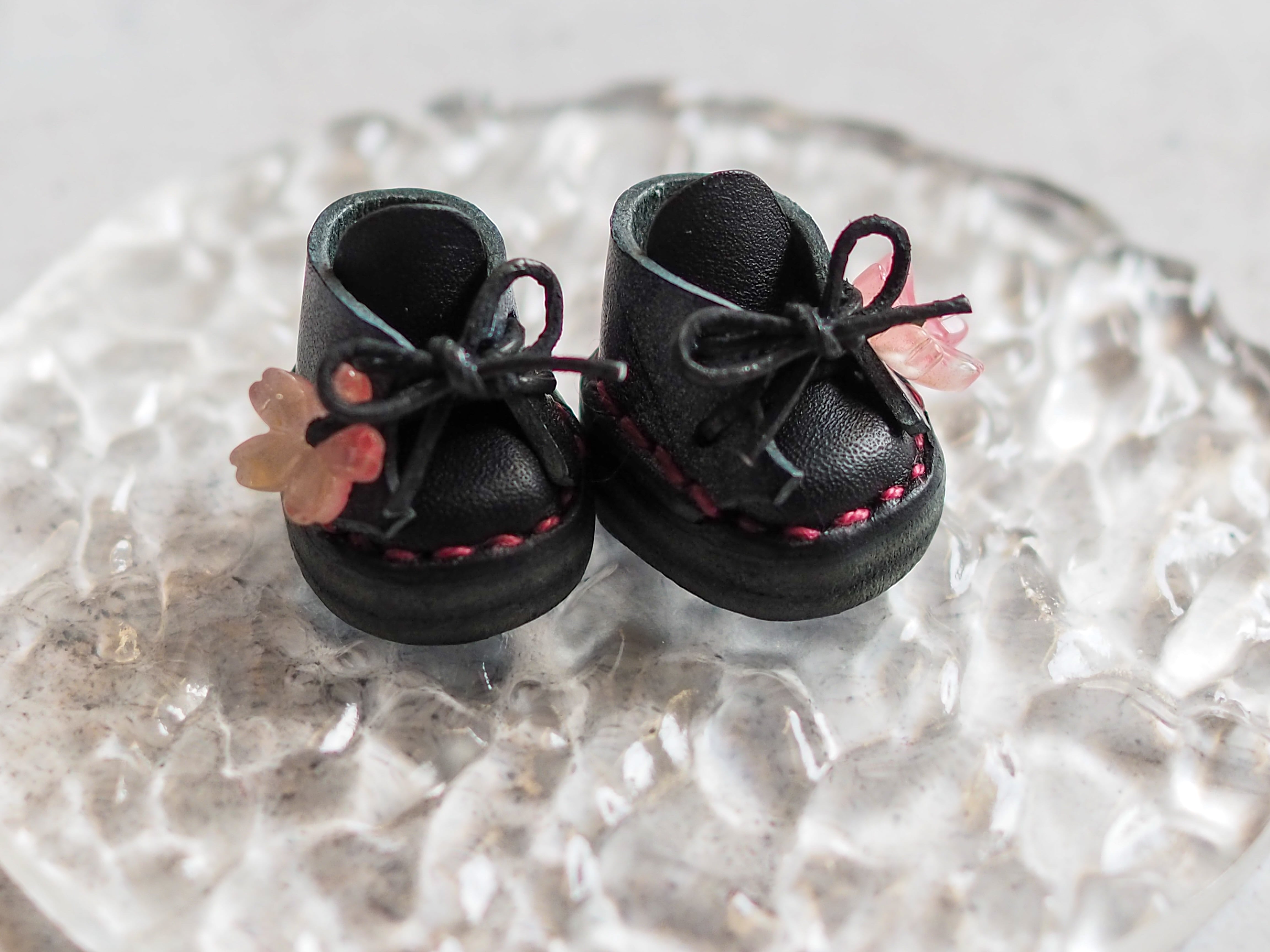 紅白のステッチ、お花をあしらったぬい靴をSサイズ、Mサイズをご用意いたしました。
