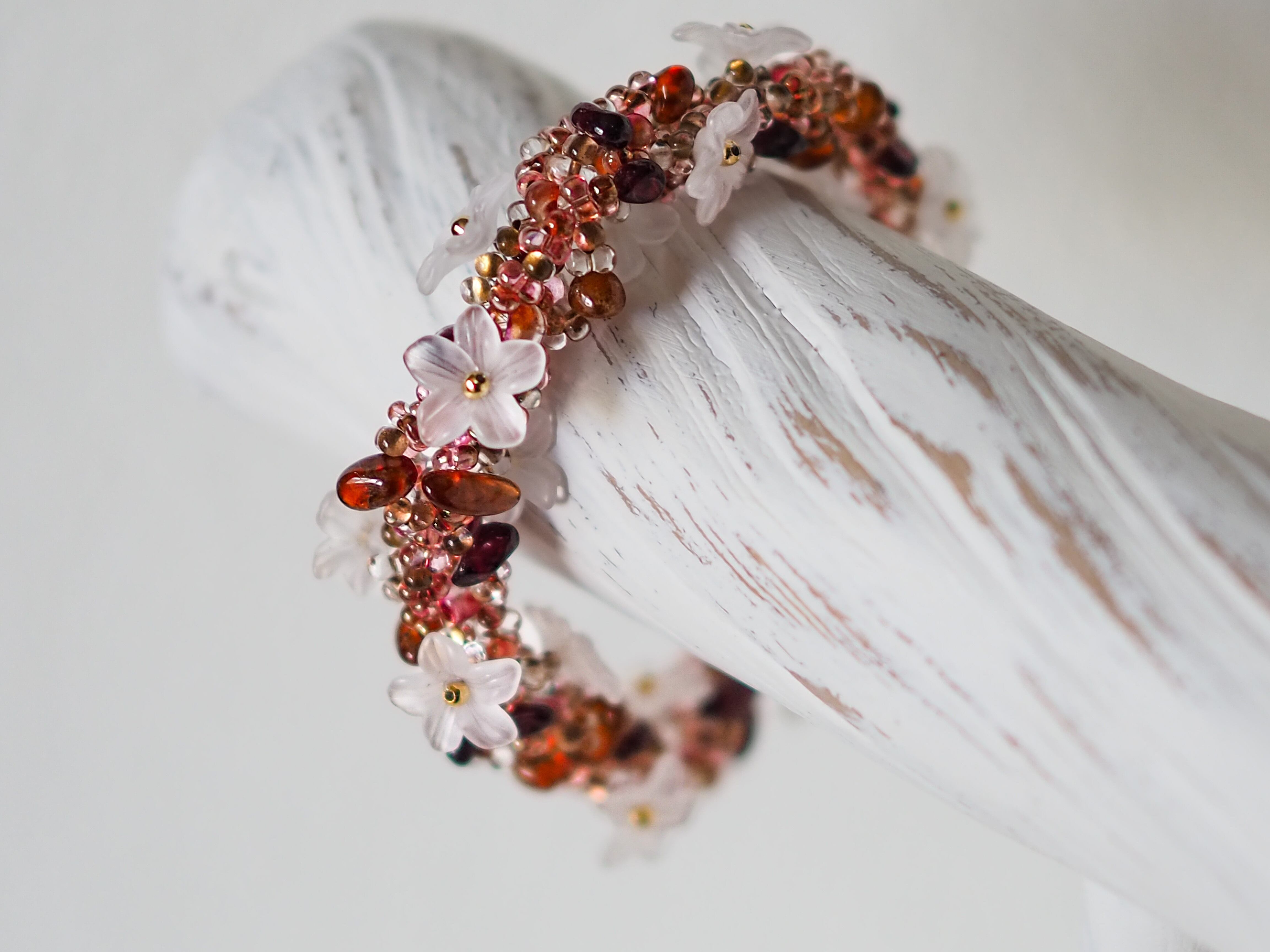 華やかな花が咲く腕元を演出する"Garnet Fleur"。