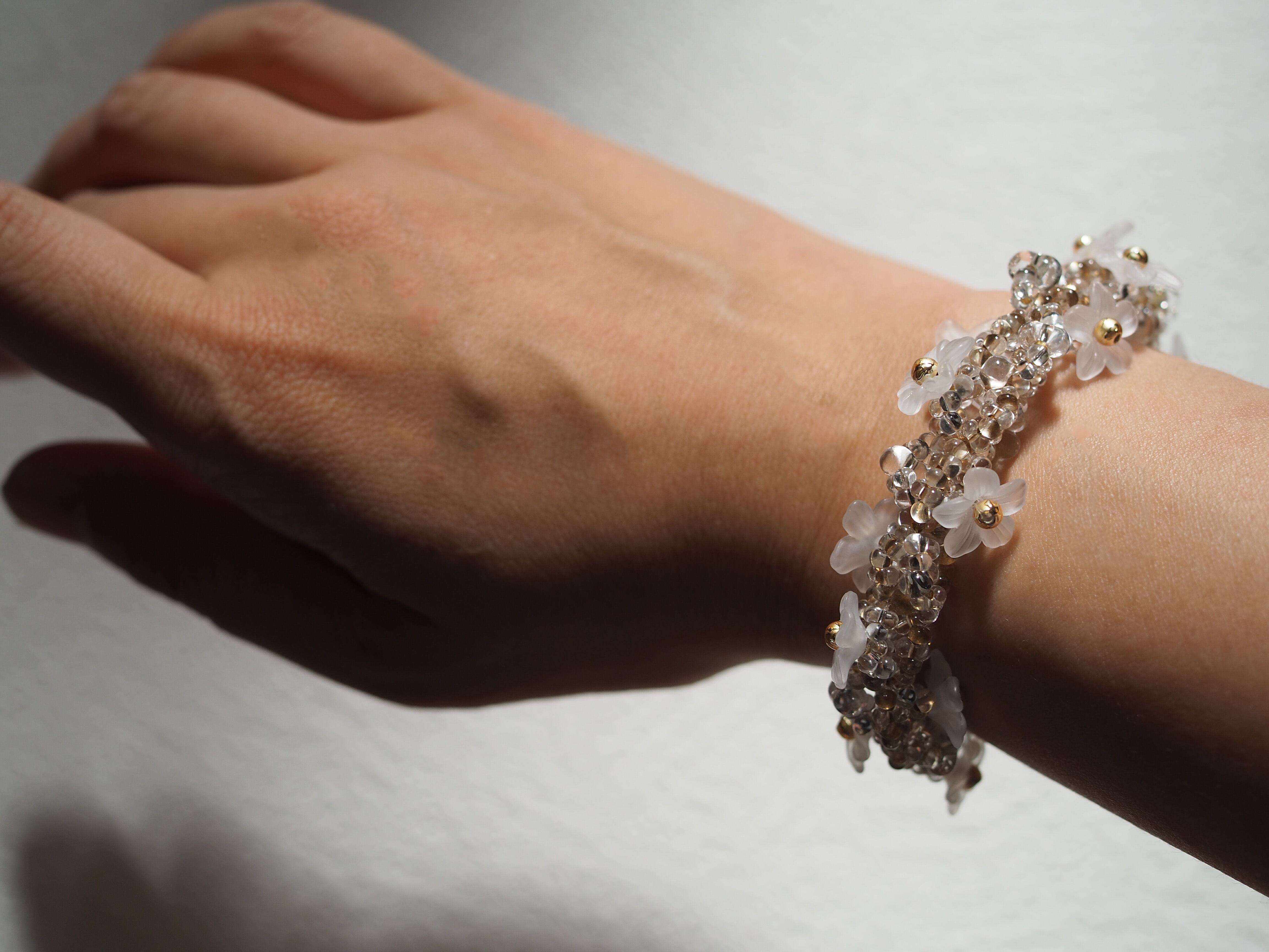 華やかな花が咲く腕元を演出する"Apatite Fleur"。
