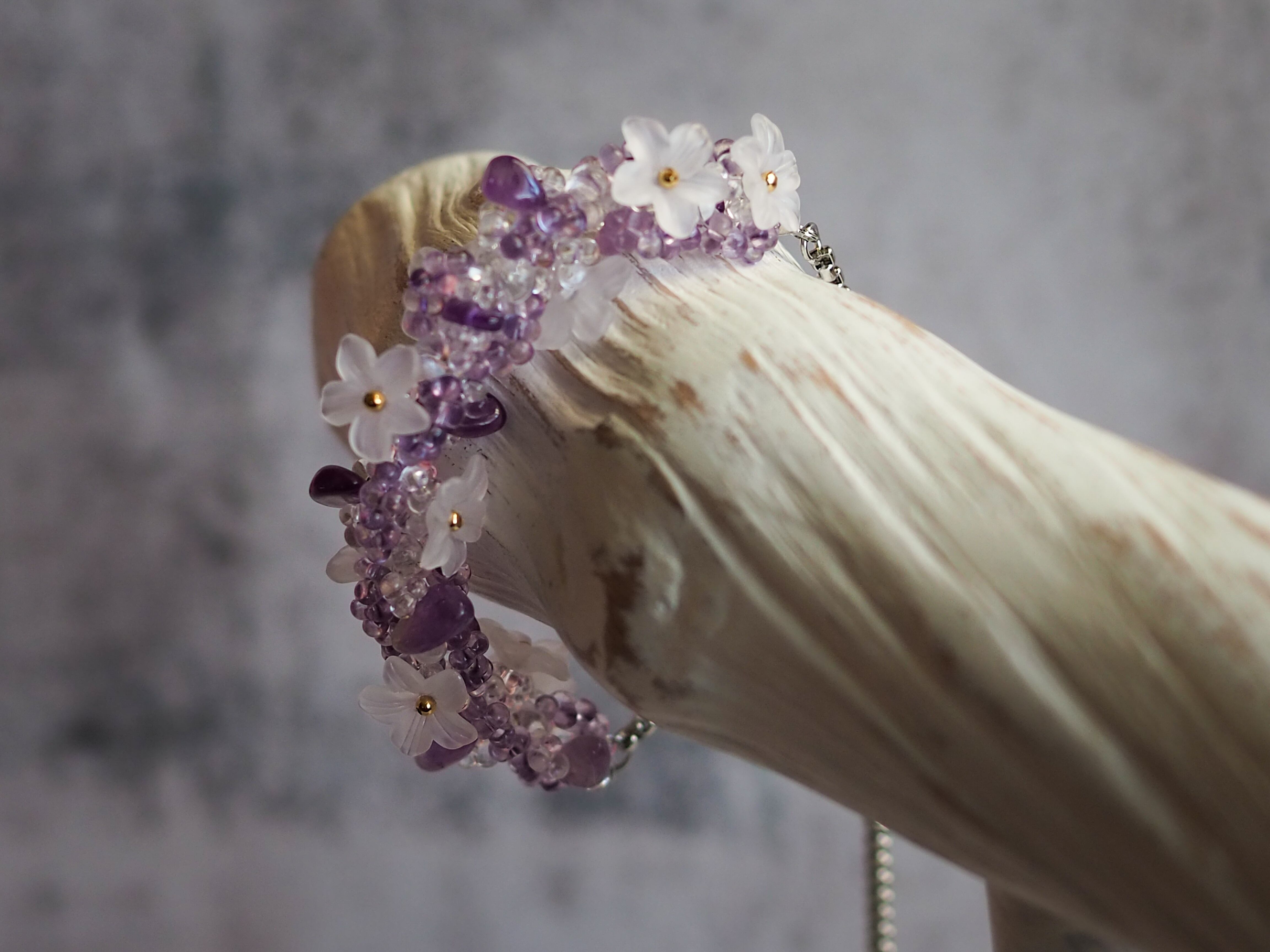 【2月】花飾りのスライダーブレスレット【アメジスト】