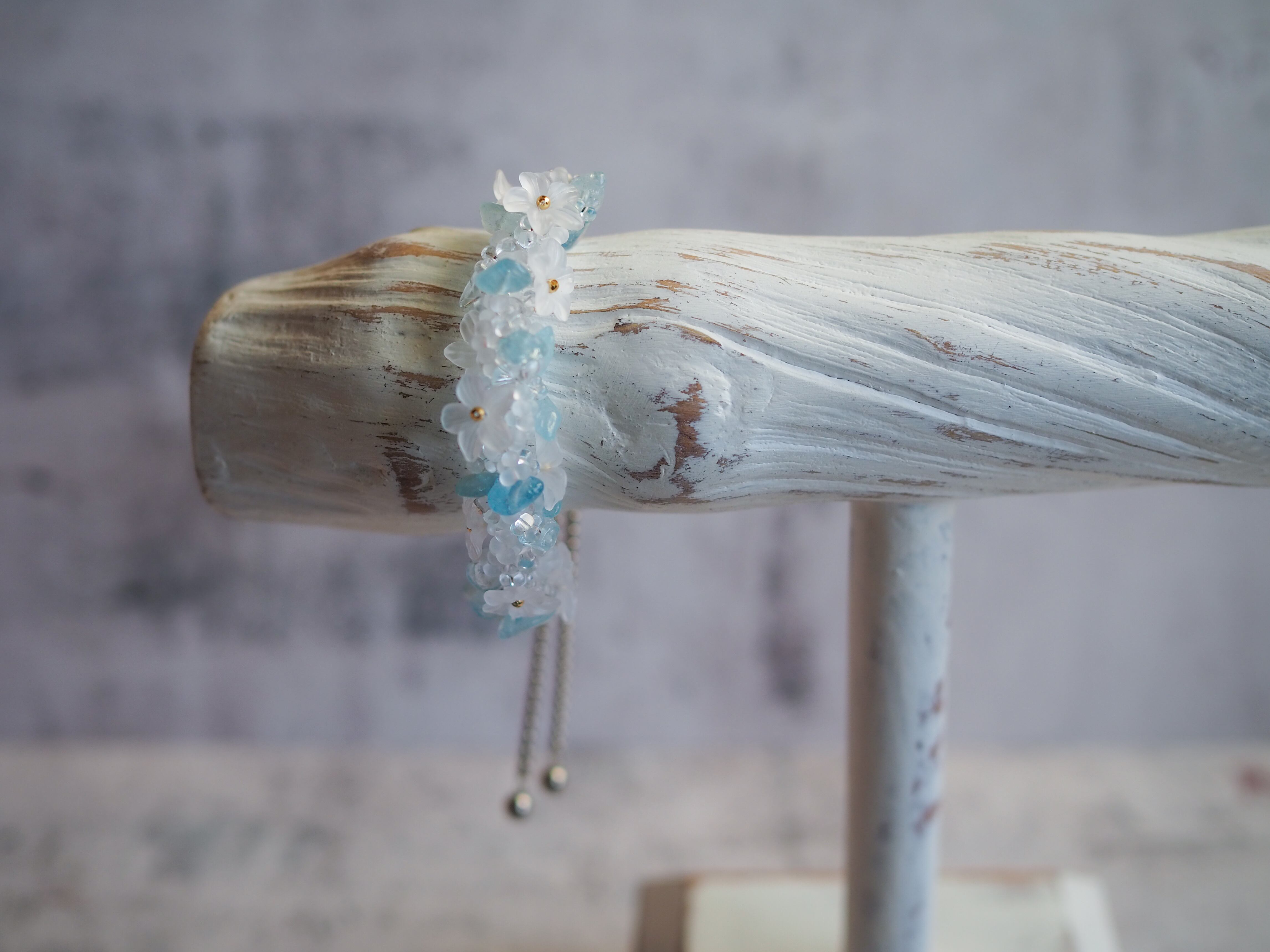 【3月】花飾りのスライダーブレスレット【アクアマリン】