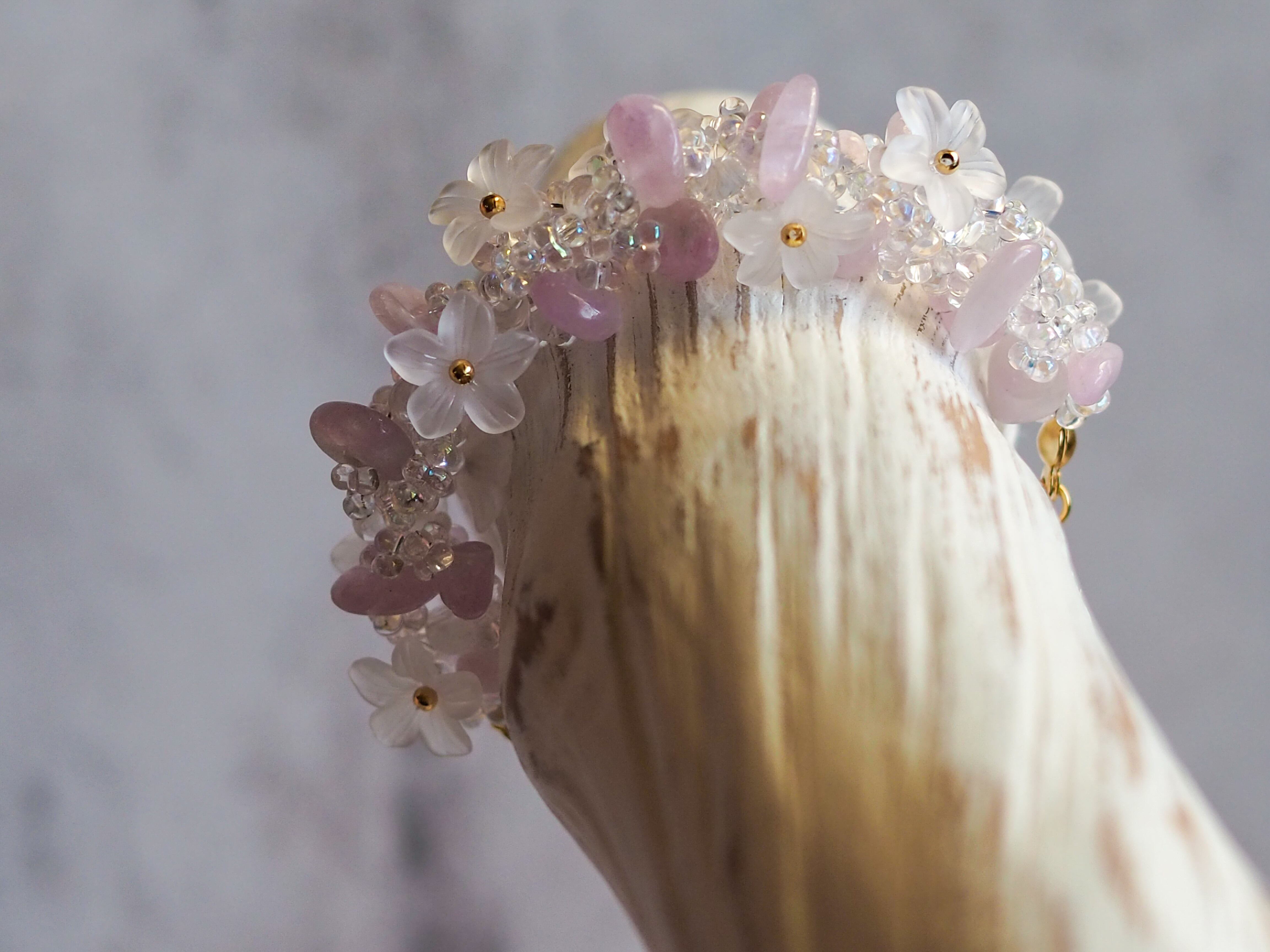 【9月】花飾りのスライダーブレスレット【クンツァイト】
