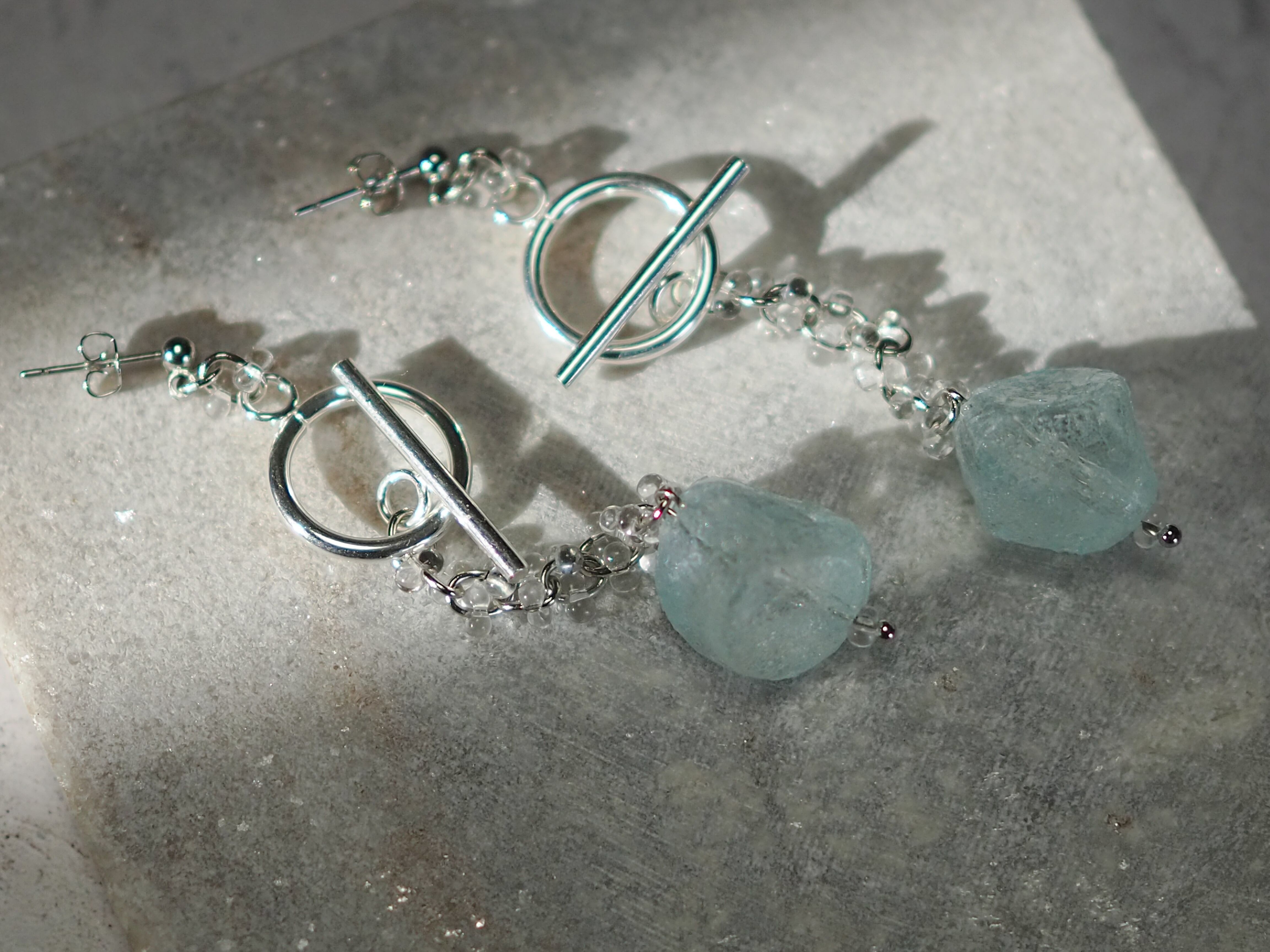 氷の欠片が耳元で涼しげに揺れるイメージの耳飾りです。金具はスタッドピアス、ネジバネ式イヤリングのどちらかをお選びいただけます。