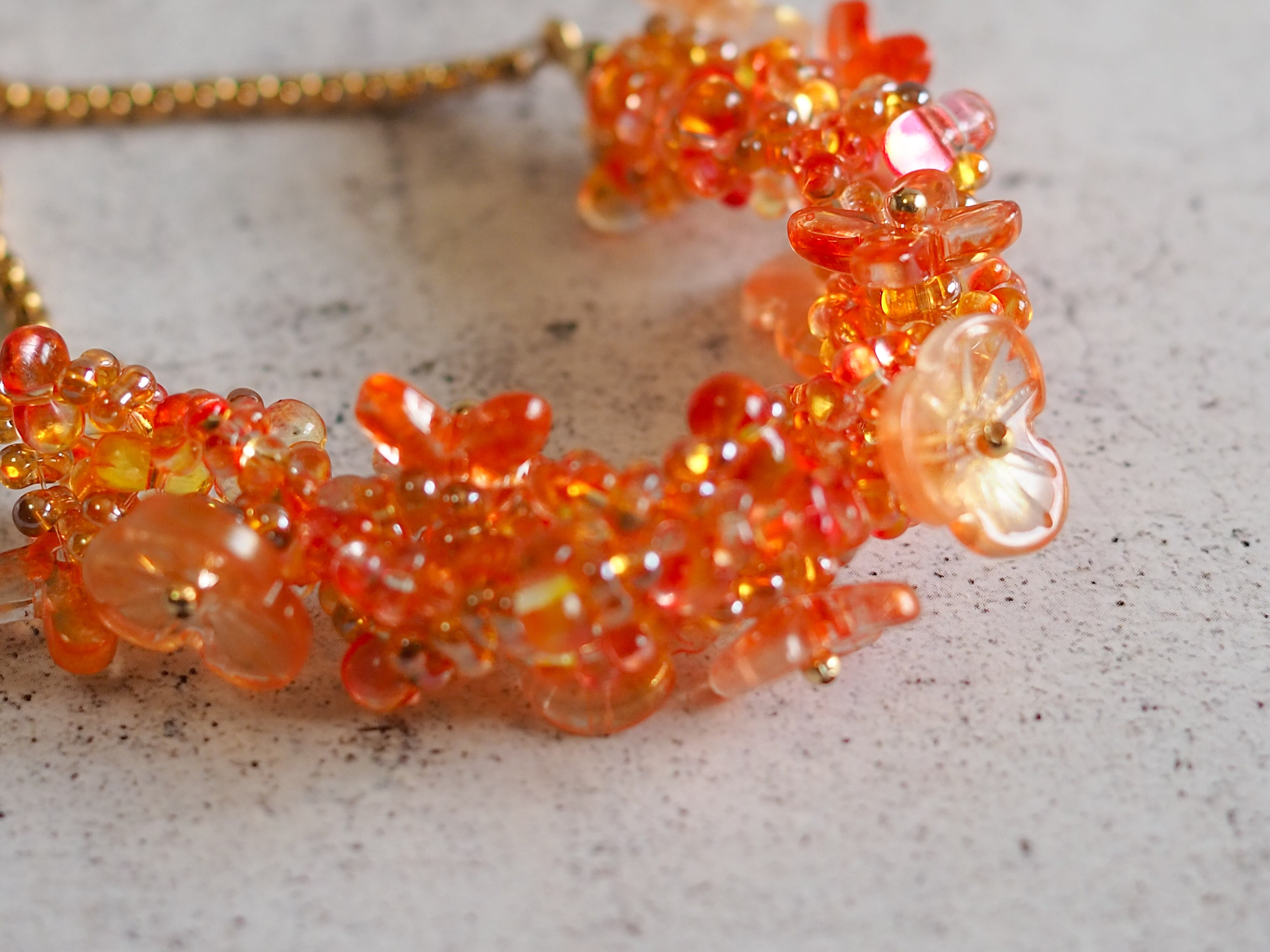 チェーン、スライディングビーズはステンレス製の物を使用し、変色しにくいもののためお手入れも簡単です。日々に花を添えるアクセサリーとして愛用していただけることを願っております。