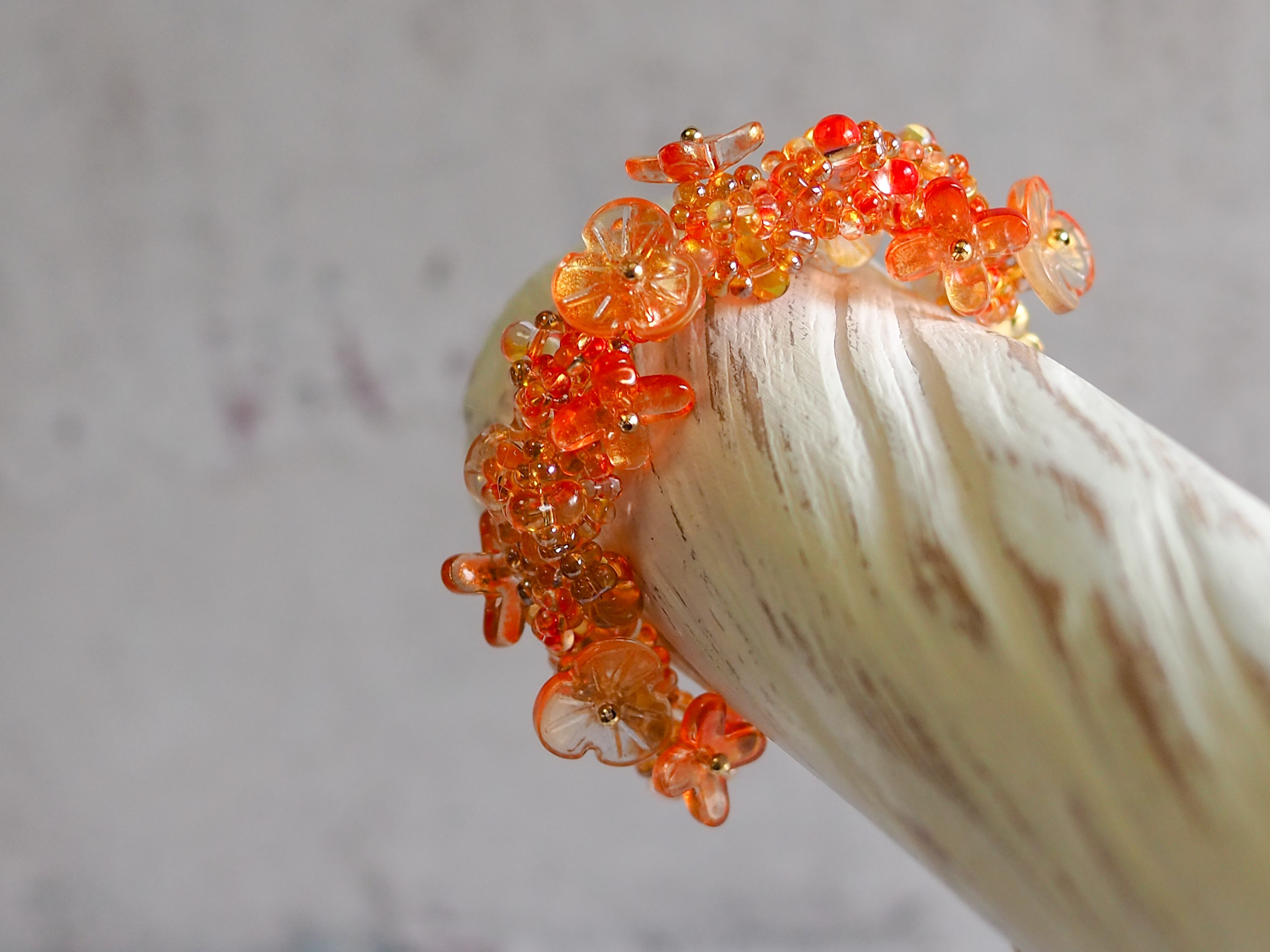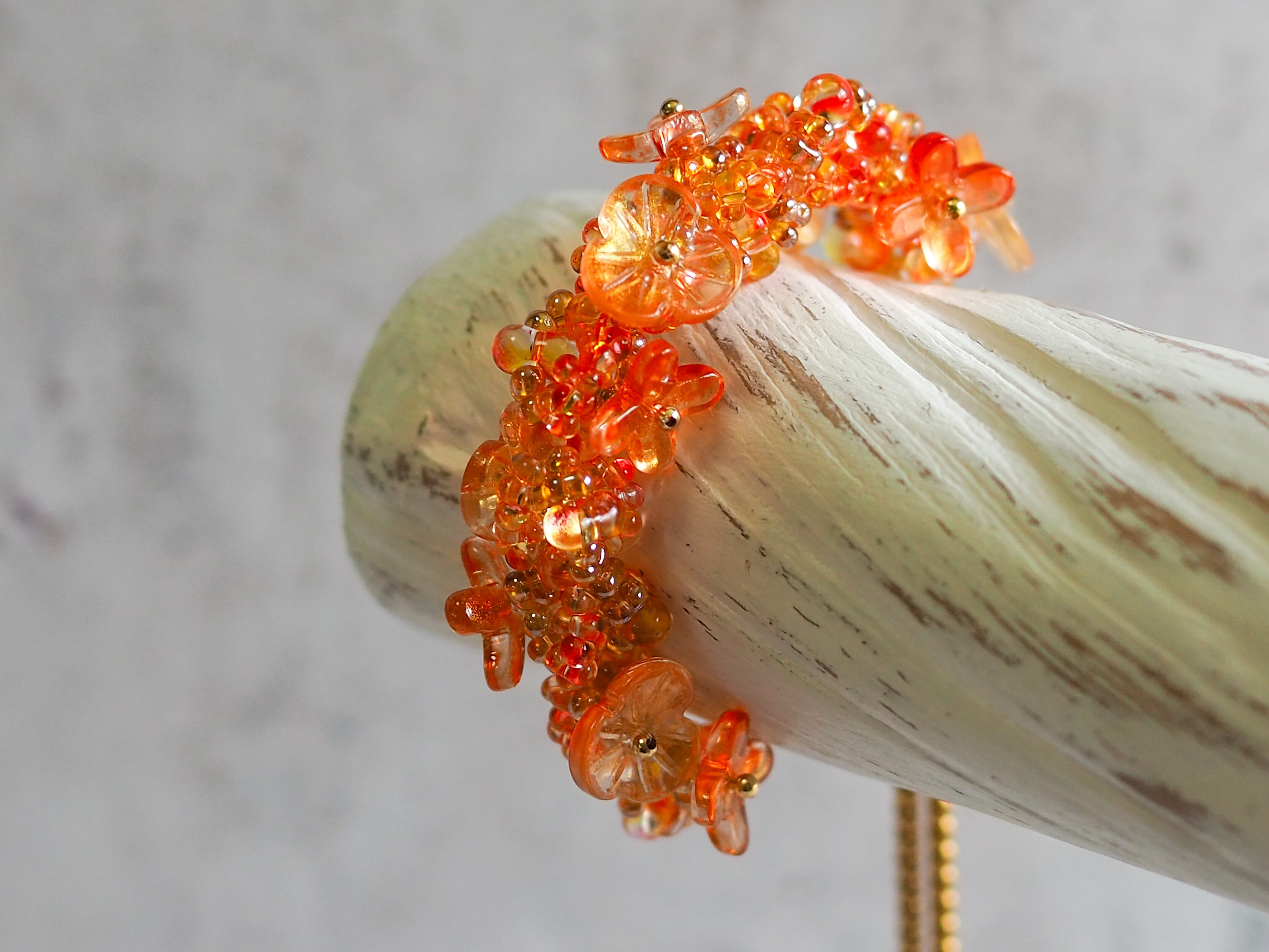 チェコガラスビーズとガラス製のお花パーツとを丁寧に編み上げたブレスレットです。
