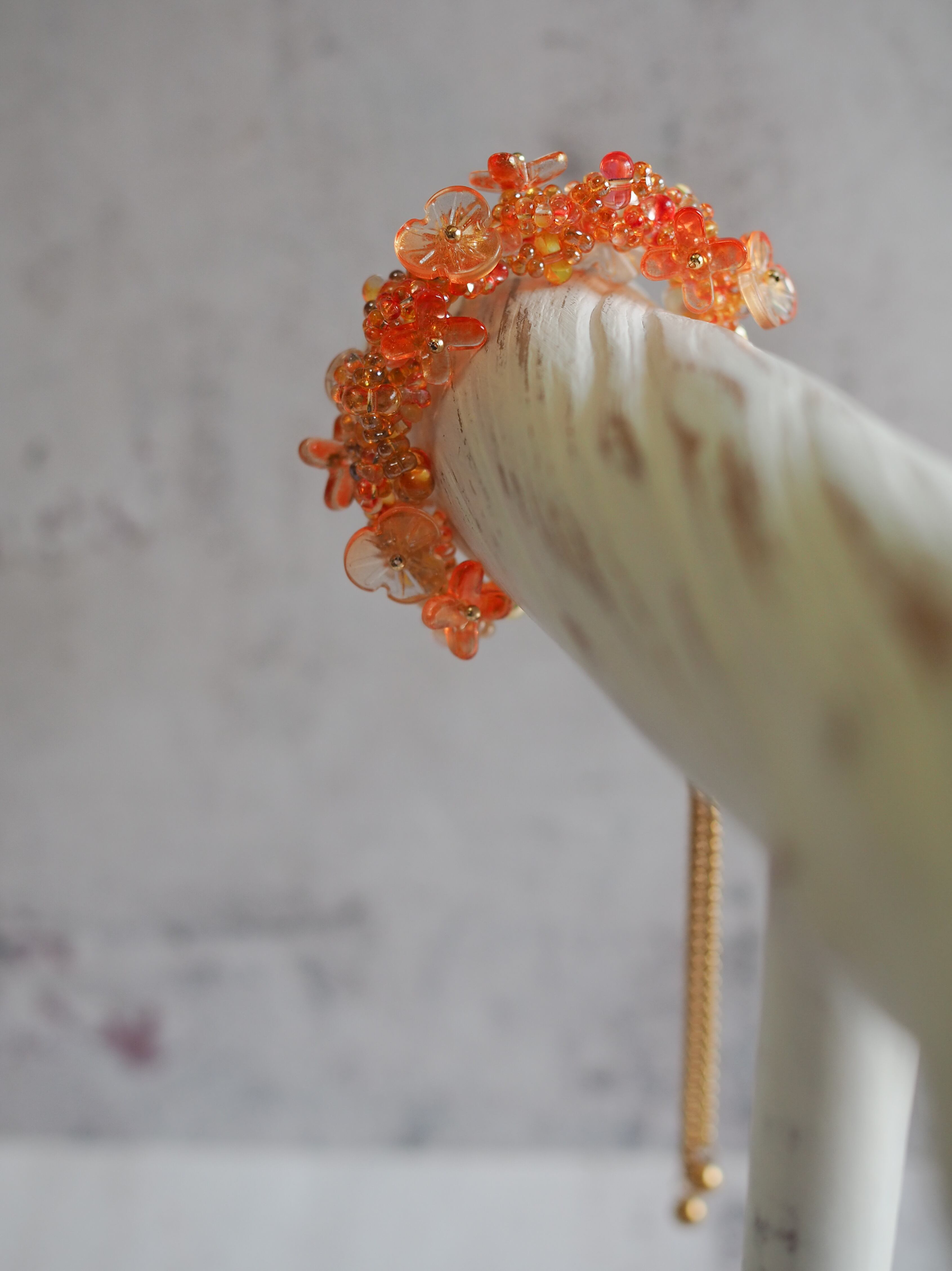 夕映えに花星【花飾りのスライダーブレスレット】
