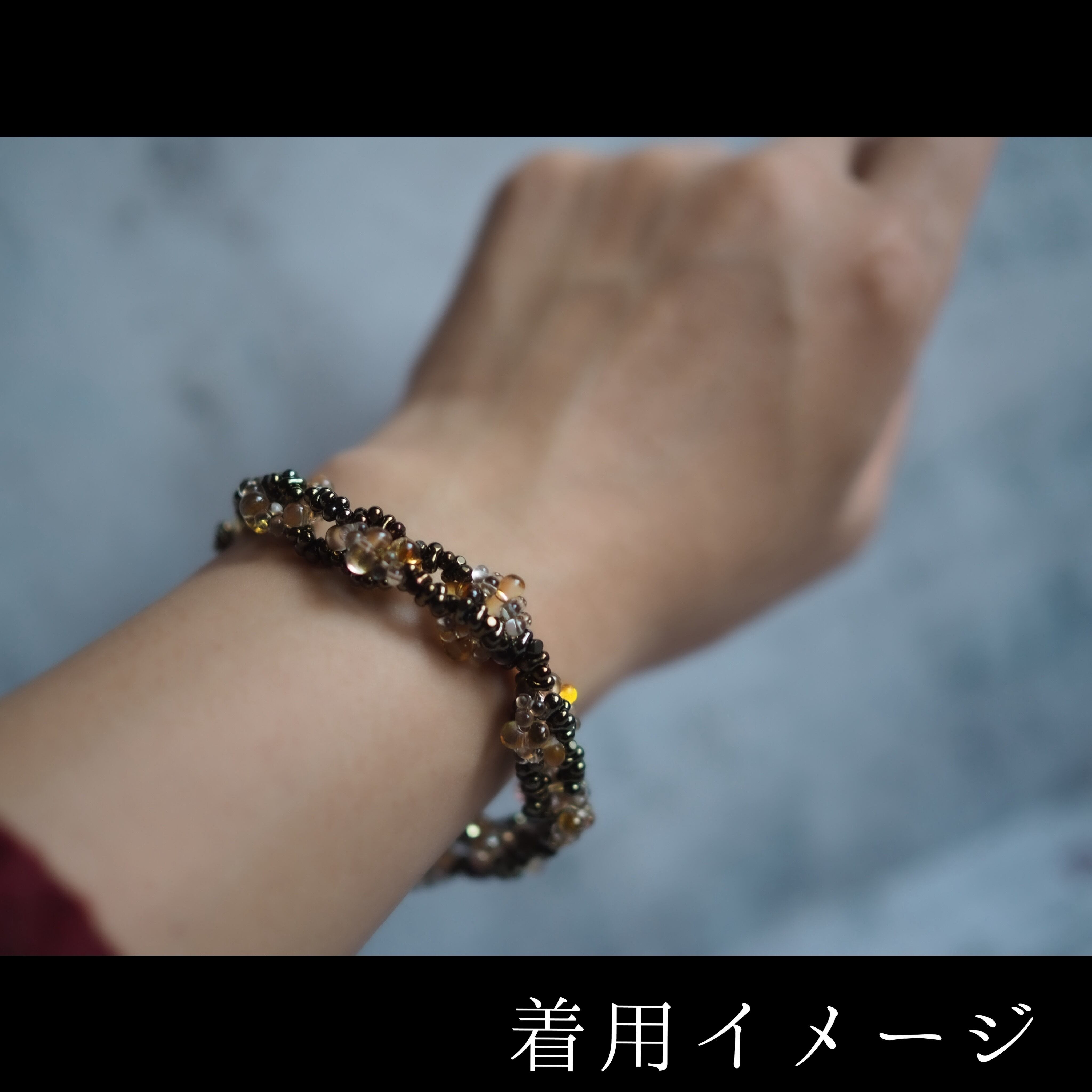 チェコファルファーレビーズを丁寧に編み上げた奥行きのある透明感のブレスレットです。